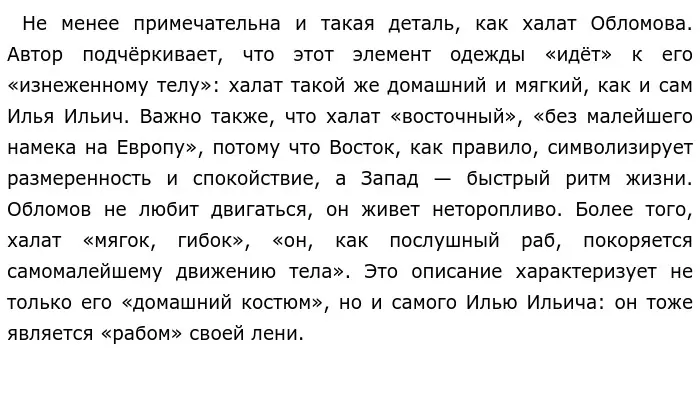И. А. Гончаров в романе «Обломов», написанном в 1857 году, обличил недостатки дворянского общества и показал, как способен измениться человек под влиянием среды, в которой он живет. Для раскрытия этой идеи автор использовал образ Ильи Ильича — дворянина, чья жизнь могла бы быть более насыщенной, если бы не его барское воспитание и окружение, которые стали препятствием для развития личности Обломова, обеспечив ему все необходимые условия для беспечного существования. В произведении есть множество деталей, благодаря которым образ главного героя раскрывается многогранно.