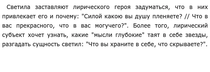 Лирический герой, обращаясь к звездам, показывает такие свойства души, как стремление к познанию неизвестного и желание быть ближе к светилам.