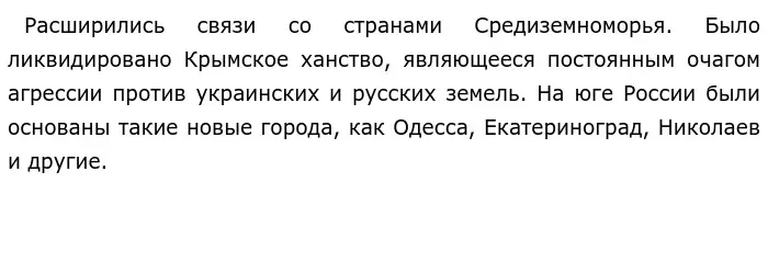 Борьба России за выход к Чёрному морю во второй половине 18 века имела большое значение для дальнейшей истории России. В результате данного процесса ускорилось хозяйственное развитие степного юга России.