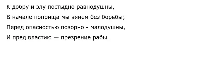 Высшего взлёта гневный протест Лермонтова достигает в последних шестнадцати строках стихотворения. Здесь автор прямо называет убийц поэта, "жадною толпой стоящих у трона", Лермонтова не только гневно обличает убийц Пушкина, но и разоблачает государственный строй, при котором законы оправдывают любое преступление богатых и знатных: