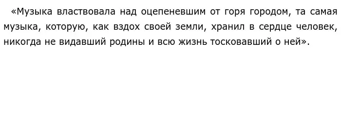 Таким образом, музыка может помочь справится с тяжелыми жизненными обстоятельствами вызвать тоску по Родине. Она может побудить человека на хорошие поступки. Поэтому музыка очень важна и играет большую роль в жизни каждого человека.