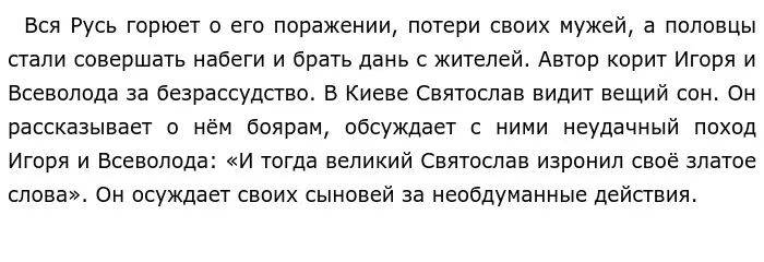 Автор поддерживает слова Святослава, что говорит о том, что писатель поддерживает идею того об объединении сил князей со всей Руси для борьбы с общим врагом, половцами. Произведение актуально до сих актуально. Оно затрагивает множество проблем. Оно учит человека любви к своей родной стране, Родине. Оно показывает, что стоит совершать только хорошо обдуманные поступки, которые в будущем не приведут к краху и проблемам. Произведение «Слово о полку Игореве» получилось очень красочным, оно наполнено различными эмоциями. Оно очень реалистичное и поучительное. Большинство произведений того времени слишком романтизировали древнюю Русь. Произведение можно считать новаторским, ведь именно здесь автор впервые за историю русской литературы выразил свое отношение к героям своей поэмы.