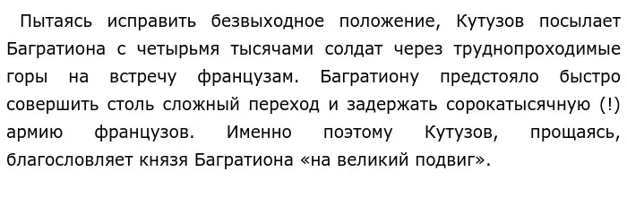 Только Андрей Болконский увидел то сильное и героическое, имеющееся в капитане Тушине, и поэтому он вступился за капитана на военном совете, где его сделали единственным виновным по всех промахах. Но, как знают читатели и Андрей Болконский, его действия предотвратили разгром русского отряда.