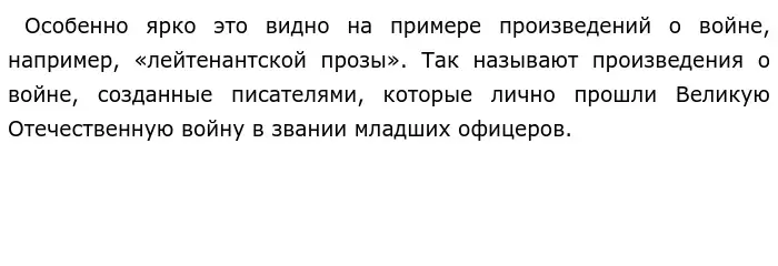 Далее В. В. Быков, имея богатый опыт участия в Великой Отечественной войне, для аргументации тезиса приводит пример, связанный с войной. Он подробно пишет об избирательности памяти ветеранов: один «наиболее ярко запомнил» страх от близости смерти, другой — «как его награждали орденом», третий — комический случай, связанный с обращением к нему начальства. Это наблюдение позволяет писателю сопоставить участников войны и авторов военной прозы: «Это я говорю о ветеранах, но то же можно сказать и об авторах военных романов». Писатель видит общее, закономерное в процессе сохранения событий прошлого в человеческой памяти и в процессе отражения его в литературе.
