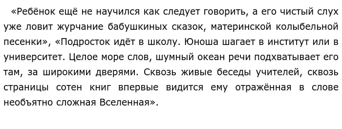 Размышляя над проблемой, автор отмечает рассуждения рассказчика о том, что жизнь человека неразрывно связана с языком, так как с самого детства он слышит речь родителей, сверстников и учителей, познаёт с помощью слова мир: