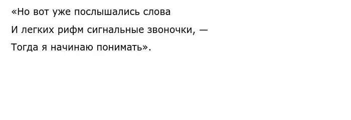 Помимо этого Ахматова всегда знала, кем она является и какую цель должна нести в этот мир. Свои мысли она иллюстрировала в такого рода стихотворения, как «Творчество». В нем лирическая героиня вдохновляется окружением. В это же время в её подсознании возникают строчки, будто полученные сигналом свыше: