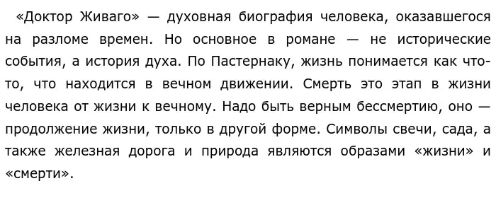 Б. А. Пастернак написал одно из значимых произведений русской литературы двадцатого века, это роман «Доктор Живаго». Кроме задачи поведать читателям историю главного героя, автор хотел также передать свои мысли.