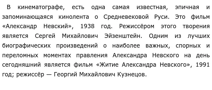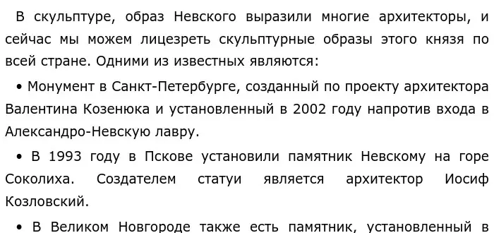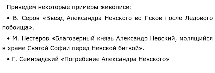 Александр Невский занимает очень важное место в русской культуре. Его образ значительно повлиял на развитие культуры, а именно искусства.