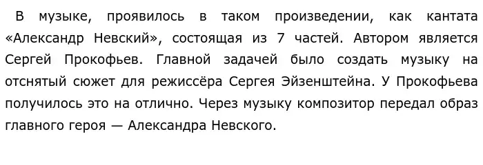 К сожалению, не одно представление образа Александра Невского не сохранилось к нашему времени, и, поэтому каждый человек видит его как-то по-своему. Многие выдающиеся деятели искусства прославляют его образ в художестве.