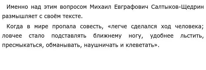 Данные примеры сопоставлены друг с другом: они показывают, что если в один момент совести больше не станет, люди начнут совершать грязные поступки, хитрить, обманывать, тем самым постепенно разрушая свою жизнь.