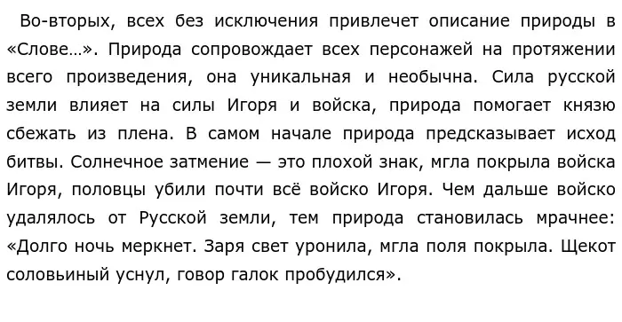 «Слово…» может впечатлить и заинтересовать каждого, кто прочитал этот памятник древнерусской литературы. Произведение завлечет тех, кто увлекается историей Древней Руси, тех, кто любит точные описания природы. Каждый найдет в этом творении что-то интересное и привлекательное, то что его впечатлит и не оставит равнодушным.
