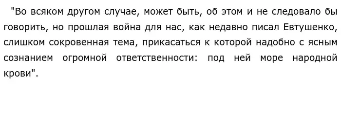 Я согласна с мнением В. В Быкова и думаю, что необходимо помнить и знать подробности этого страшного события, а именно то, что было в действительности. Искажение истории является неуважением к солдатам. Их подвиг нужно помнить и ценить, ведь они сражались во благо нашего светлого будущего. Для подтверждения своей позиции приведу пример из литературы.