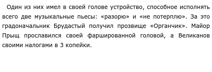 Но последний градоначальник был хуже всех остальных, звали его Угрюм-Бурчеев. Как пишет автор: «чистейший тип идиота». Его план заключался в том, чтобы разрушить Глупов и возвести на останках города Непреклонкс. Город с прямыми улицами, одинаковыми домами и жителями. Он так и не смог воплотить свой план до конца. Явилось нечто и «прохвост моментально исчез, словно растворился в воздухе». История прекратила течение.