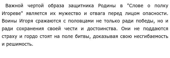 Однако, помимо героизма и отваги, образ защитника Родины в "Слове о полку Игореве" также раскрывает уязвимость и человечность. Герои испытывают страх, боль и горе от потерь товарищей по оружию. Они плачут за павших собратьев и выражают свою грусть и скорбь. Это показывает, что даже великие герои не лишены эмоций и имеют свои слабости, но они все равно продолжают сражаться и защищать свою Родину.