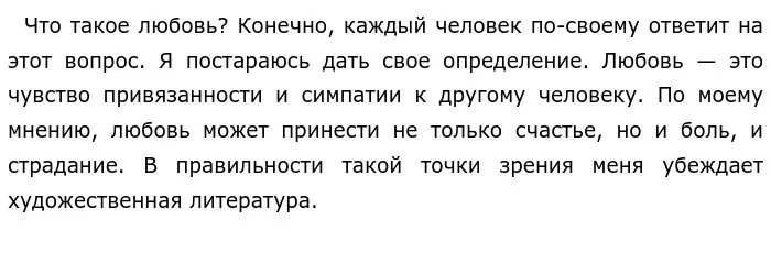 Сочинение соответствует теме, используются примеры из художественной литературы, но есть логическая ошибка в рассуждении. Во вступлении сказано, что любовь может принести не только счастье, но и страдание. Подобранные примеры указывают только на несчастную любовь. Нужно было сформулировать вводную часть иначе.