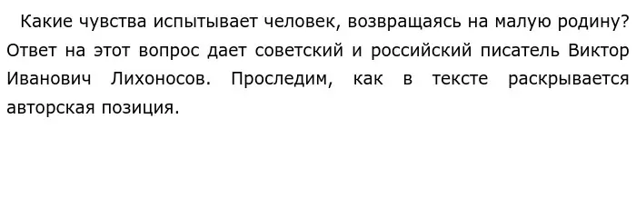 Приведенные примеры противопоставлены друг другу. Первый раскрывает приятную сторону возвращения на малую родину: веселые воспоминания, возможность пересмотреть свои взгляды, предать особую ценность чему-то, на что не обращал внимание ранее. Второй показывает, как приезд домой спустя долгий период времени формирует ощущение отчужденности от родного края и вызывает печаль. Проанализировав связь приведённых примеров, мы понимаем позицию автора: человек, вернувшийся на малую родину, может испытывать двойственные чувства и воспринимать окружающую действительность по-новому.