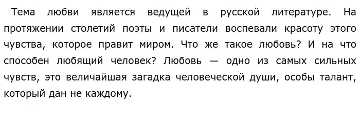 Проблема самопожертвования ради любви поднимается во многих художественных произведениях. Так, например, М. А. Булгаков в романе «Мастер и Маргарита» пишет о женщине, которая была готова пойти на крайность и совершить отчаянный поступок ради того, чтобы быть рядом с любимым человеком. Образ Маргариты автор наградил добродетелями сильной любви, сострадания и самопожертвования. Именно поэтому героиня, не упуская возможности отыскать Мастера, идёт на сделку с дьяволом и становится ведьмой. Эти поступки говорят о том, что для Маргариты ничто так неважно, как любовь. Судьбу героини М. Булгаков сводит к тому, что она жертвует своей жизнью и отправляется в иной мир вместе со своим возлюбленным, где их ждёт вечный покой. Маргарита всем доказала, что одним из основополагающих качеств истинной любви является готовность идти на любые жертвы ради близкого человека.