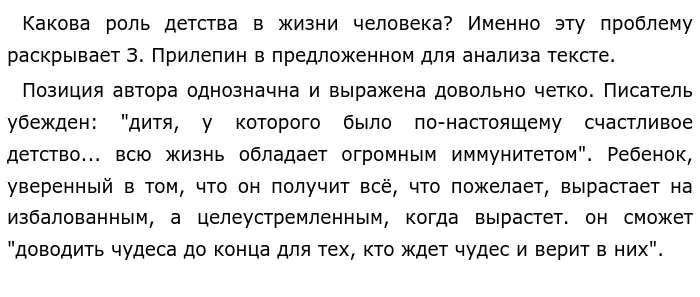 Раскрывая проблему, автор рассказывает историю семьи, которая жила бедно и на новогодние подарки ребенку родители начинали копить за полгода. Однажды ребёнок заметил, что среди подарков нет того, что он хотел. Он заплакал, тогда родители посмеялись над ситуацией и пообещали написать телеграмму Деду Морозу (предложение 39). Автор подчёркивает: желания детей нужно исполнять, потому что это делает их счастливыми.