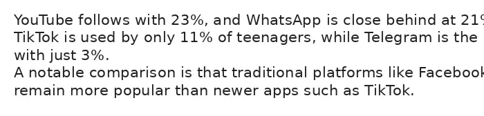 3. Comparisons: Facebook leads vs TikTok (11%), Telegram least popular (3%).