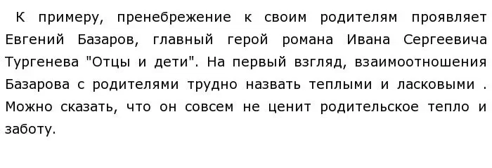 Таким образом, нельзя оправдать равнодушие к родителям. Эгоизм не допустим по отношению к тем людям, которые нас любят. Человек, не почитающий своих родителей, не заслуживает человеческого внимания и сочувствия. Необходимо ценить и любить своих мам и пап!