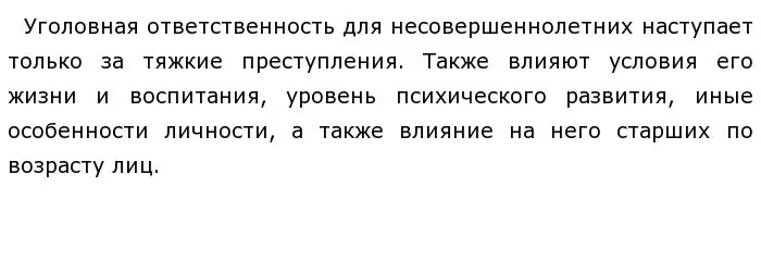В этом высказывании поднимается проблема разной оценки одних и тех же проступков и преступлений, которые совершили совершеннолетние и несовершеннолетние лица. В цитате говорится о том, что закон более лояльно относится к лицам, которые еще не достигли восемнадцатилетнего возраста.