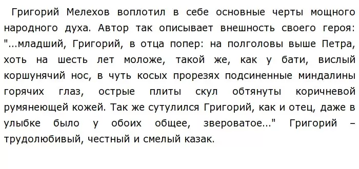 Григорий Мелехов – собирательный образ человека, который оказался перед нелегким выбором между взаимоисключающими взглядами. Автор говорит читателям о том, что поиск правды был для Григория долгим, мучительным, сложным, но на этом пути он остался человеком.