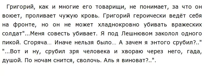 Григория отталкивает бессмысленная жестокость большевиков, беспощадно расправляющихся со своими соотечественниками.