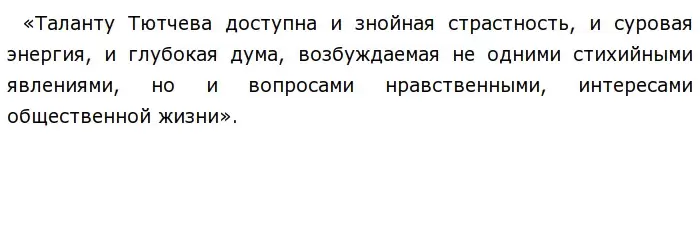 Эти строки принадлежат Николаю Александровичу Добролюбову. Пожалуй, никто не осмелился сказать, что-то против его слов. Тютчева называли и называют восходителем природы. С ранних лет его сердце задели красоты русской природы. Не секрет, что Тютчев много времени проводил за рубежом, но сердцем он всегда был в России. Первые свои строки о природе Тютчев написал в Германии, это было его одно из известнейших творений «Весенняя гроза». Тютчев даже в самой плохой погоде мог найти что-то прекрасное. Зимой, когда всё вокруг засыпано белыми хлопья снега и вокруг стоит безмолвная тишина он писал