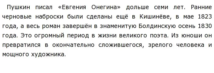 Миновала южная ссылка. Два года прошли в изгнании в Михайловском, затем Пушкин вернулся сначала в Москву, потом в Петербург и осенью, в год окончания романа, был накануне женитьбы на московской барышне Наталии Николаевне Гончаровой.
