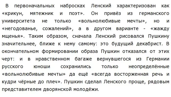 Такое полурастительное прозябание сближало их с Простаковыми, а то даже и со Скотиниными из фонвизинской комедии. В окончательном тексте сатирические краски убраны. Пушкин добрее и терпимее у отцу и матери своей любимицы. Но вот более серьёзное отклонение, которое могло бы увести сюжет романа у иному решению. По первоначальному наброску Онегин сразу, после первого же посещения Лариных чувствует особое волнение:
