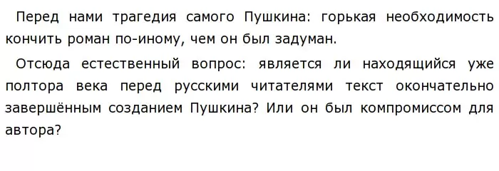 В черновиках «Онегина» нет существенных отклонений в сторону по сравнению с окончательным текстом. Но следы некоторых колебаний и поисков всё же имеются. Как раз они-то и свидетельствуют о ясности общего замысла.