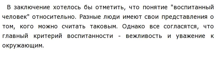 Оба приведенных примера, дополняя друг друга, позволяют нам убедиться в том, какую важную роль воспитание играет в нашей жизни, так как именно от него зависит общественное одобрение поступков человека окружающими.