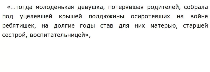 (17)Долг всех, кто пережил величайшую из войн и кому есть что рассказать людям, — сделать это в любой доступной для него форме. (18)Мы, литераторы, а также издатели, журналисты должны помочь тем, кто не имеет достаточных для того возможностей. (19)И старый заслуженный генерал, прошедший со своей дивизией от подмосковных полей до Берлина, и прославленный партизанский руководитель, организатор всенародной борьбы на оккупированной территории, и безвестная женщина, воспитавшая полдюжины сирот, могут и должны поведать истории и человечеству о пережитом ими в лихую годину.