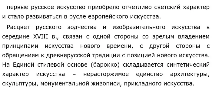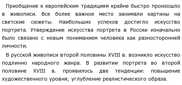 Со второй половины XVIII в. в русском искусстве продолжается развитие новой эпохи, открывшейся в первой половине XVIII в.: живопись, скульптура, архитектура, освободились от уз религии и приняли светский гражданский характер.