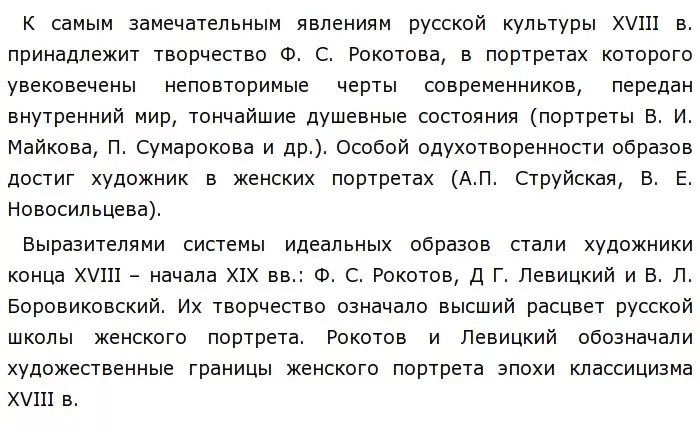Блистательно развернулось в 1770-1780 гг. творчество Д. Г. Левицкого. К высшим достижениям реалистической живописи XVIII в. принадлежит его сюита из 7 портретов «Смолянок».