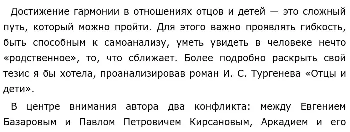 Конфликт поколений — вечная проблема, волнующая человечество. Почему же невозможна гармония между ними? Можно выделить несколько причин. Во-первых, бунт молодежи вызван обычно нежеланием старших принимать их идеи как полноценные решения состоявшейся личности. Родителям всегда кажется, что у них гораздо больше опыта, они лучше знают как действовать в той или иной ситуации. Во-вторых, старшее поколение не готово к прогрессивным идеям, оно довольствуется той стабильностью в науке и мире, которая есть, поэтому так остро реагирует на желание молодежи изменить устои, порядки, систему ценностей. Многие авторы русской и зарубежной литературы писали об этом в своих книгах и выработали методы решения этого конфликта.