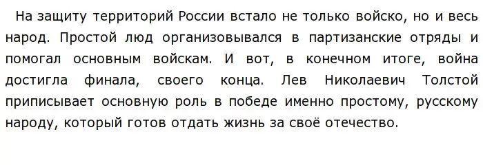 В наше время многие подростки часто думают, что произведения Л. Н. Толстого являются скучными и неинтересными. Но это не так! Творчество писателя затрагивает важные проблемы общества, потому Толстой актуален всегда. Роман «Война и мир» — самое яркое произведение Л. Н. Толстого. Он интересен мне, прежде всего, как исторический роман. Автор иллюстрирует всю жестокость и бессмысленность войны, что подтверждается словами Андрея Болконского, адресованными Безухову: «Война не любезность, а самое гадкое дело в жизни, и надо понимать это и не играть в войну». Толстой не просто описывает нам события Отечественной войны 1812 года, но и рассказывает о судьбах её участников.