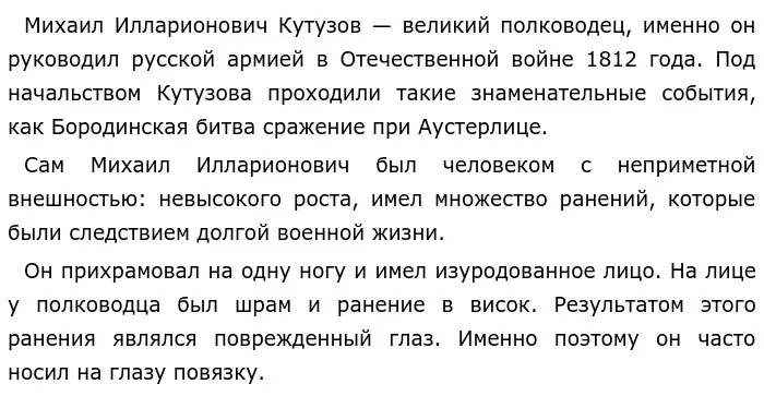 Наполеон Бонапарт — французский император и полководец . Он был низкого роста, толстоват, не так красив, как рисовали его портреты, имел маленькие руки. При этом Бонапарт был крайне самоуверен: «Бог дал мне корону. Горе тому, кто её тронет». Мужчина любил войну и находил её крайне интересной — "...Война моё ремесло".