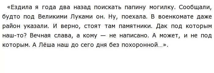 В чем суть проблемы, ставшей предметом размышления автора? Все начинается с рассказа Пелагеи, о том, как она пыталась найти могилу отца