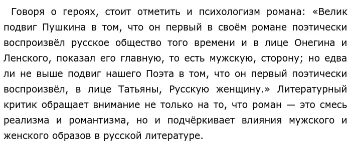 В первую очередь благодаря тому, что роман проникнут подлинным историзмом и энциклопедизмом. Реалистическое изображение общества 20-х годов — точно схваченный исторический момент в жизни России. В Е. О. дана мера для всего последующего развития страны, автор — не просто писатель, он ещё и пророк, предсказавший развитие государство в последующие года. Роман - это полотно русского общества, а А.С. Пушкин — художник, сумевший так полно изобразить картину жизни. Поэтому, читая роман, кажется, будто автору была открыта тайна Божьего замысла о России и ее судьбе.