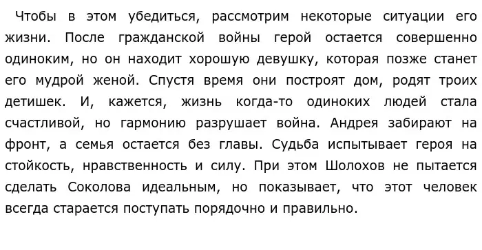Яркий пример настоящего человека в литературе показал нам Михаил Шолохов в своем произведении «Судьба человека». Главный герой Андрей Соколов — это персонаж, который вправе носит гордое звание «настоящий человек».