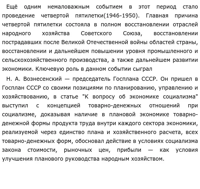 Данный период относится к послевоенному времени и нахождению у власти И. В. Сталина. В это время произошли такие важные события как начало "холодной войны", проведение четвёртой пятилетки, развитие атомной науки, денежная реформа, ХIХ съезд партии и т. д.