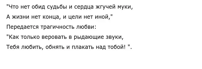 Обмануты навек тобою!" — его лучшие чувства, которые он выделил ей, были обмануты — говорится о его несчастной любви, которая останется разбитой в его сердце навек.