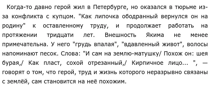 Яким Нагой — один из первых персонажей, которому автор даёт подробную характеристику. Фамилия героя и название деревни Босово, где он живёт, говорят о крайней нищете крестьянина. История жизни Якима, рассказанная мужиками, в самом деле не богата счастливыми моментами.